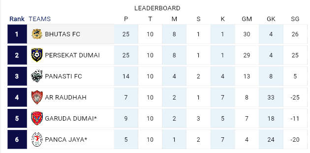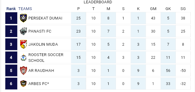 - Ar Raudhah 0 – 3 Persekat Dumai
