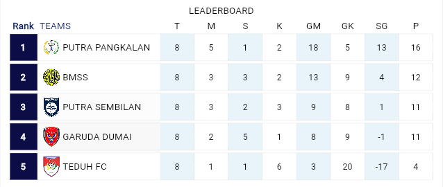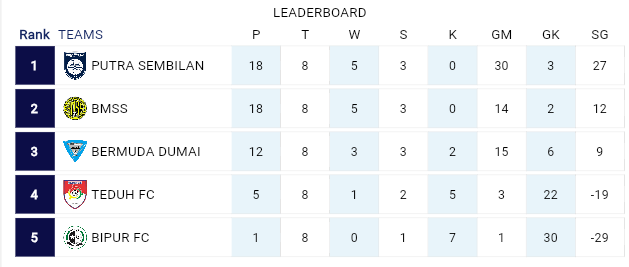 - Garuda Dumai 0 – 0 Putra Sembilan