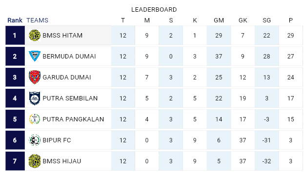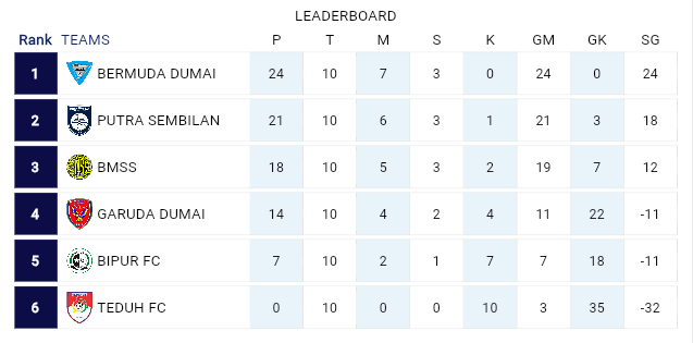 - Garuda Dumai 0 – 3 Bermuda Dumai