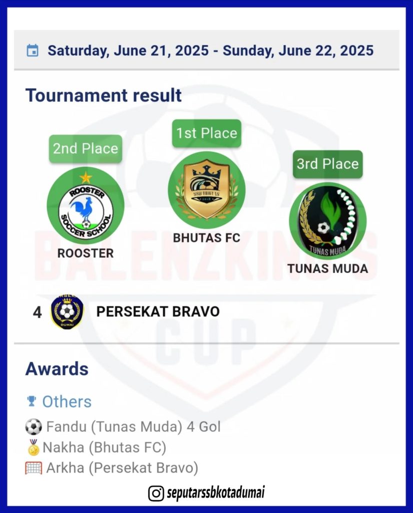 - Top Skor: Fandu (Tunas Muda) 4 Gol
