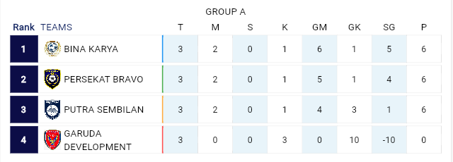 - Bina Karya 0 – 1 Putra Sembilan