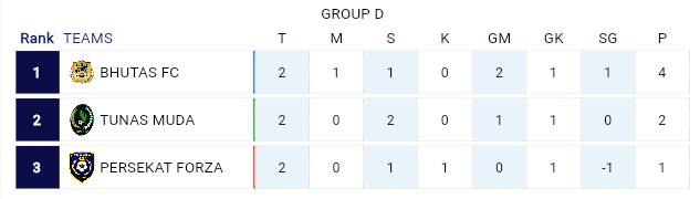 - Bhutas FC 1 – 1 Tunas Muda
